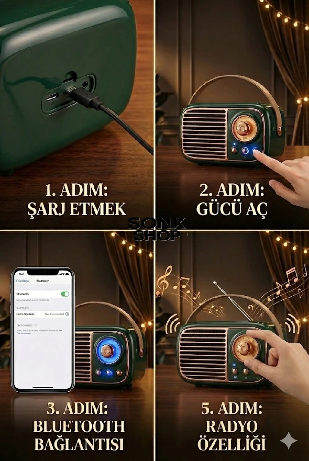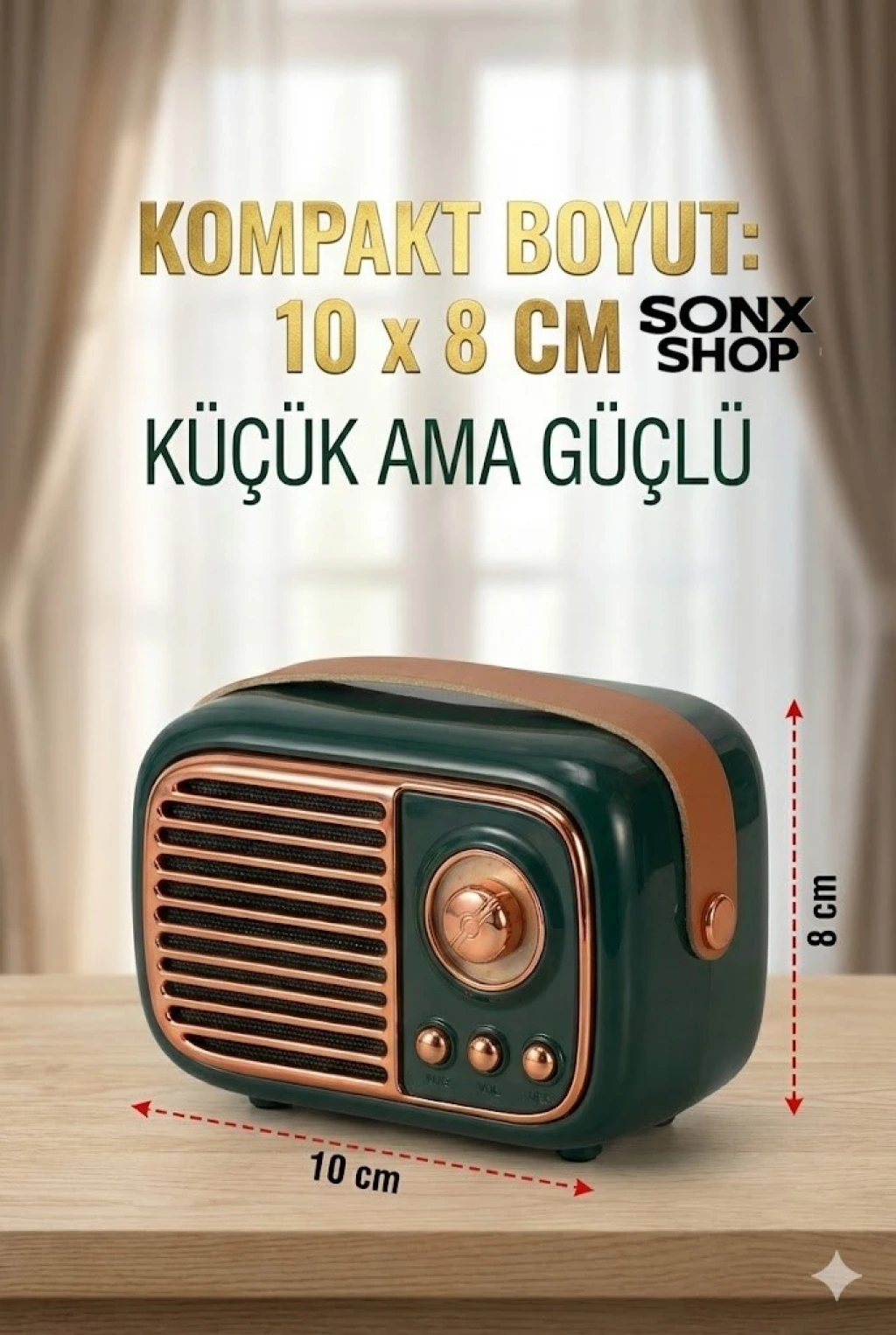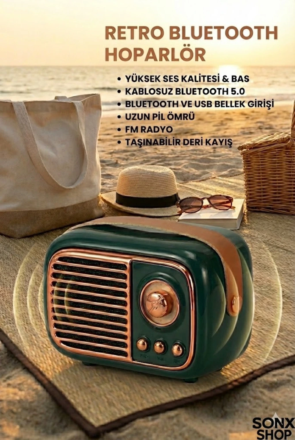 SONX Nostaljik Retro Bluetooth hoparlör, hem estetik hem de fonksiyonel özellikleriyle günlük müzik deneyiminizi zenginleştirir. Taşınabilir yapısı sayesinde istediğiniz her yerde kullanabilir, kaliteli ses performansının tadını çıkarabilirsiniz.