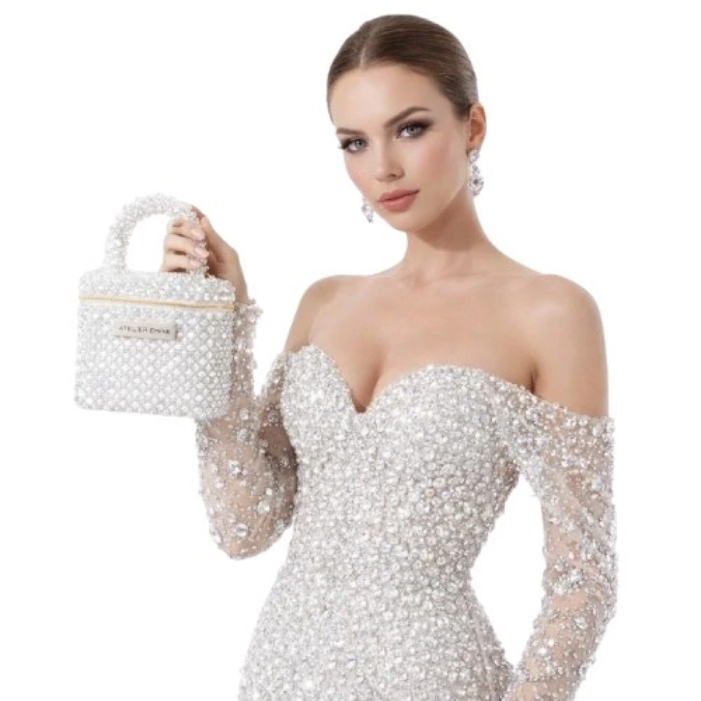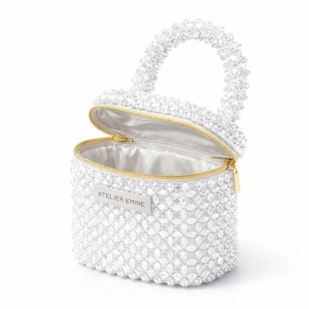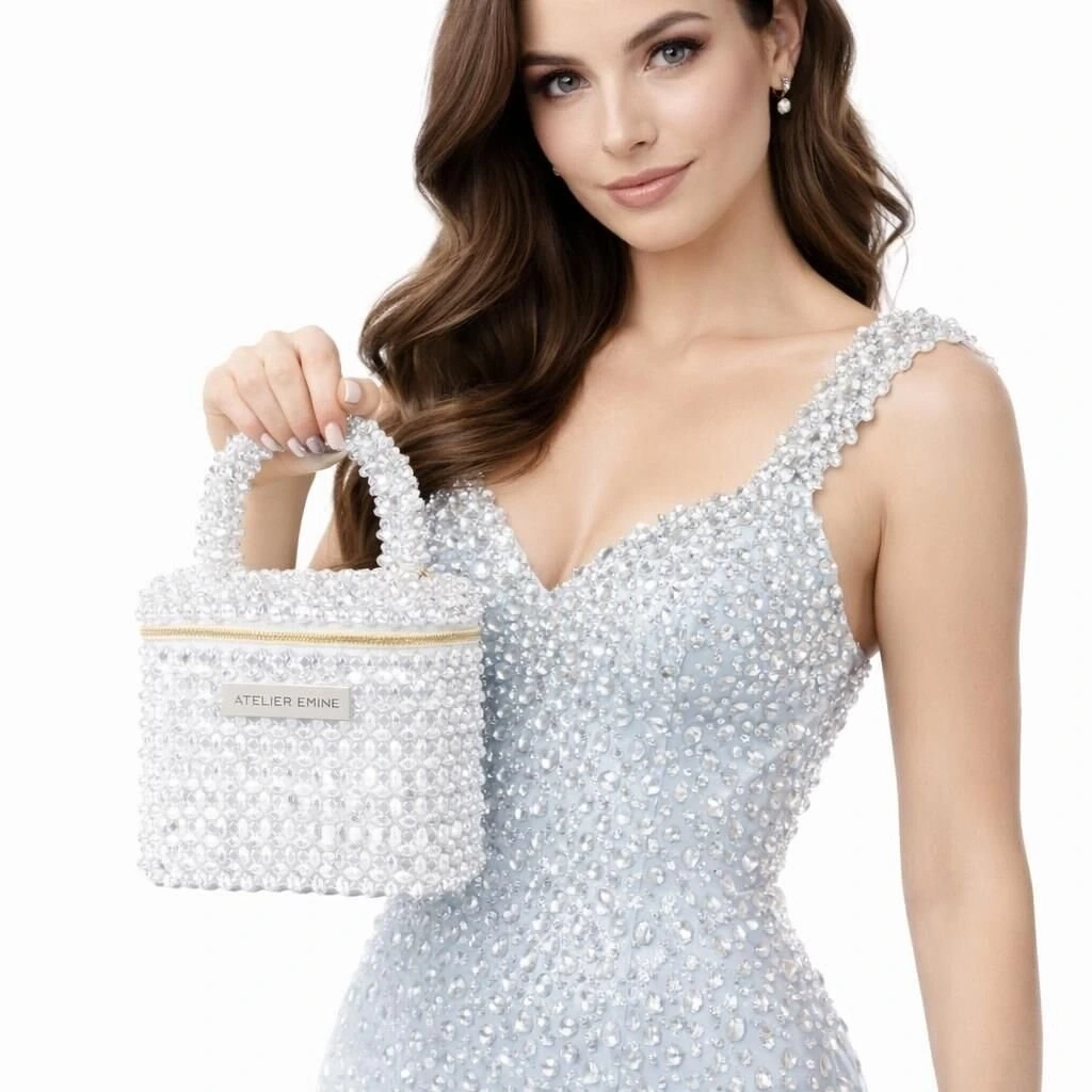 Atelier Emine’in Crystal Gelato Couture serisine ait bu tasarım; 8 mm optik sınıfı kristal boncuklar kullanılarak, tamamen el işçiliğiyle üretilmiş box formda premium mini çanta modelidir.
