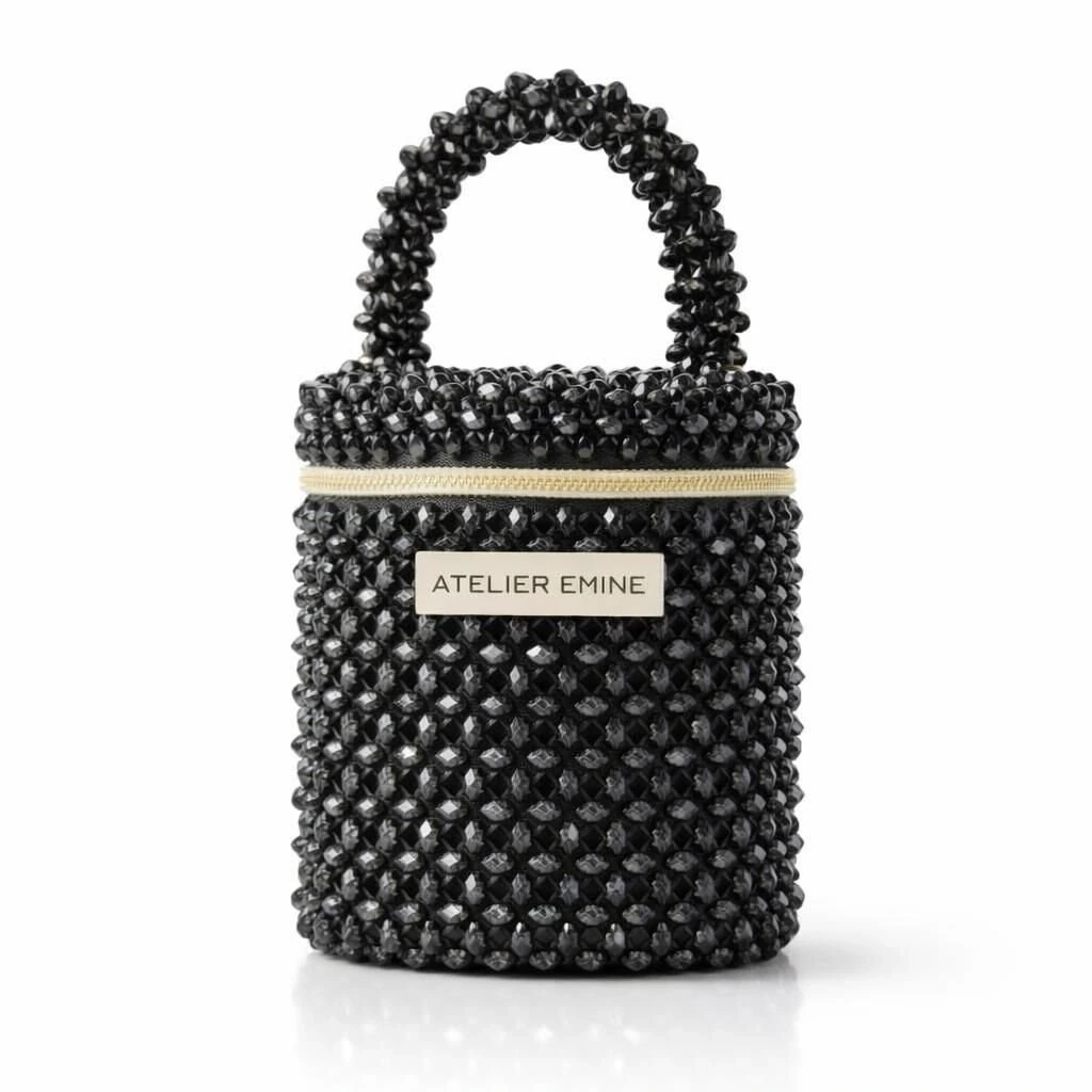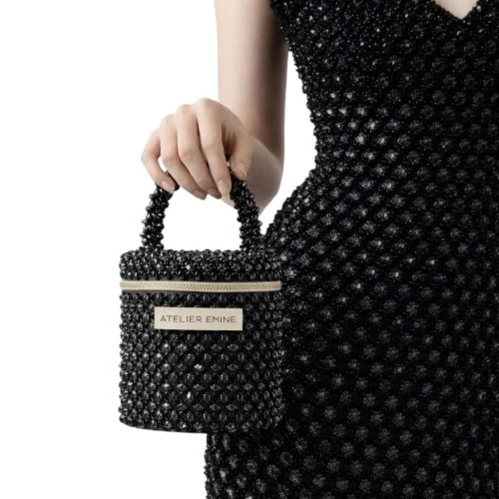 Atelier Emine’in Crystal Gelato Couture serisine ait Sorbetto Obscura, 8 mm optik sınıfı kristal boncukların yüksek dayanımlı misina ile örülmesiyle tamamen el işçiliğiyle üretilmiş, mimari netlikte formu olan premium mini çanta modelidir.