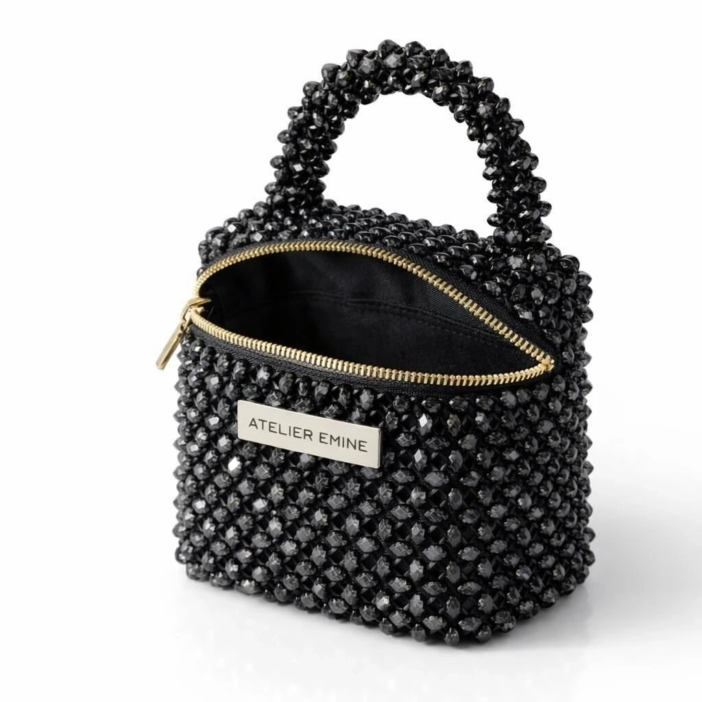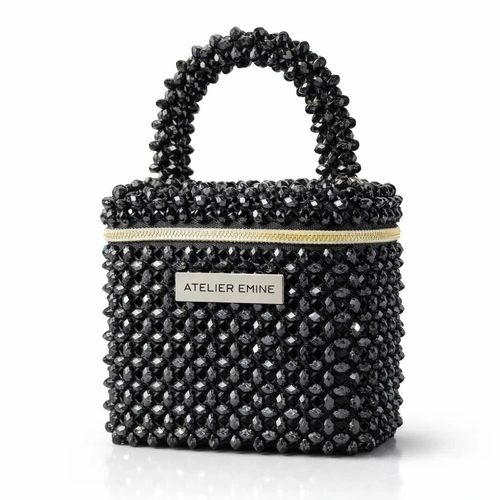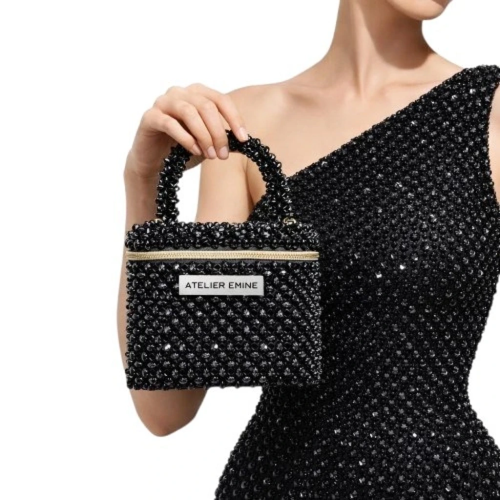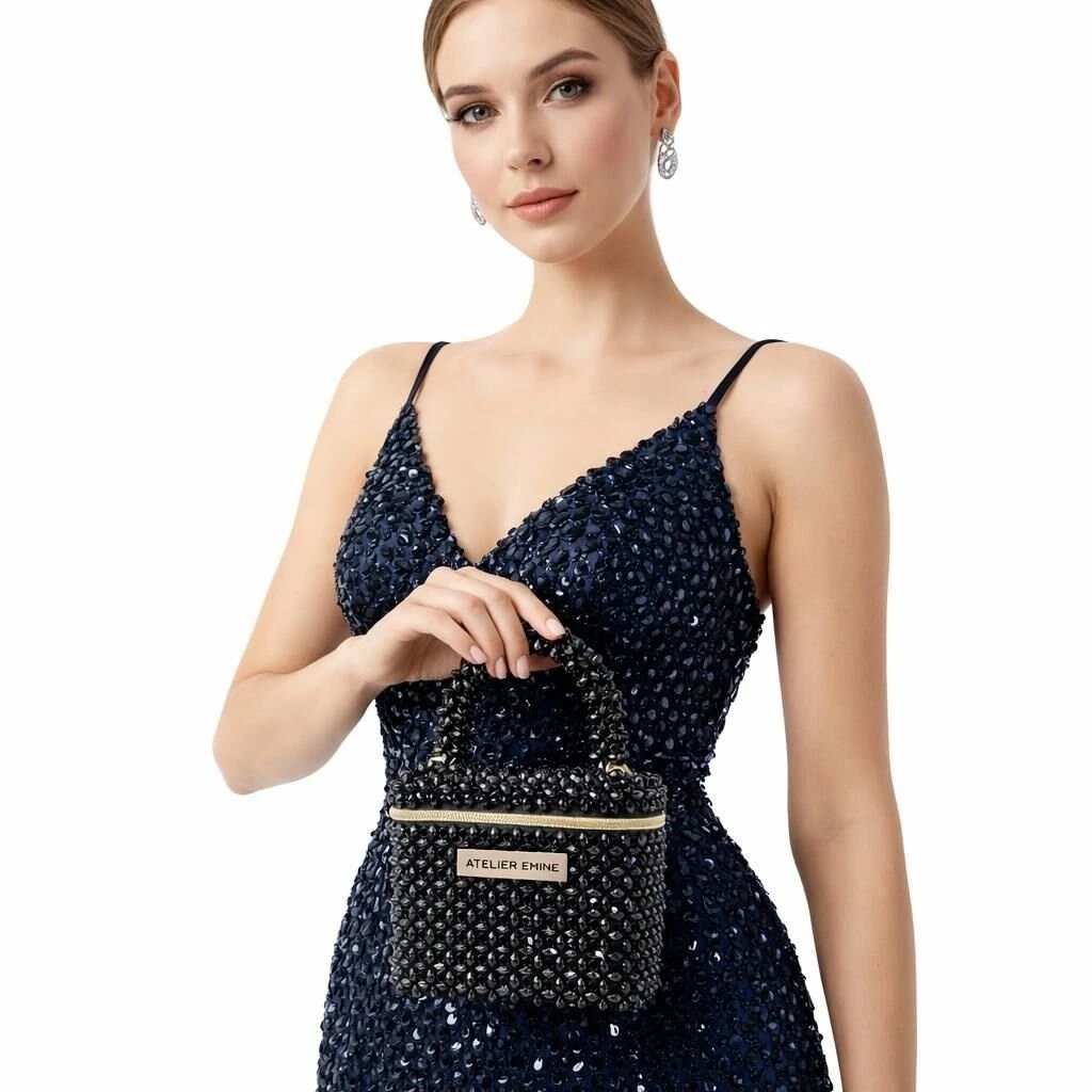 Atelier Emine’in Crystal Gelato Couture serisine ait bu tasarım; 8 mm optik sınıfı kristal boncuklar kullanılarak, tamamen el işçiliğiyle üretilmiş box formda premium mini çanta modelidir.