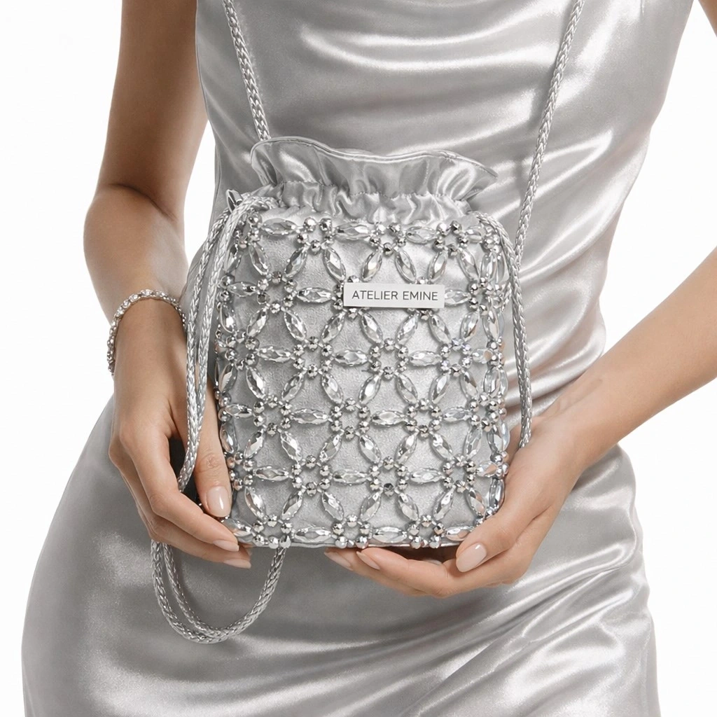 Premium El Yapımı Kristal Drawstring Mini Bag