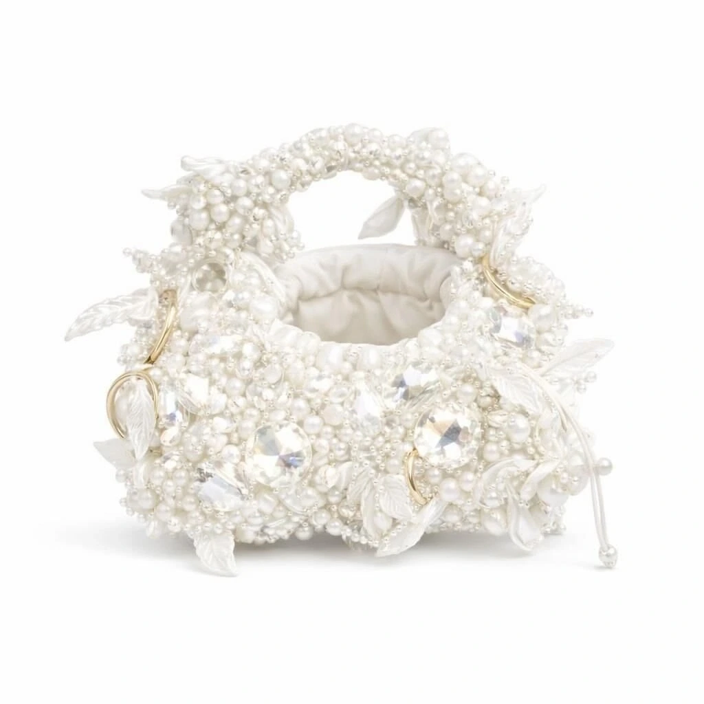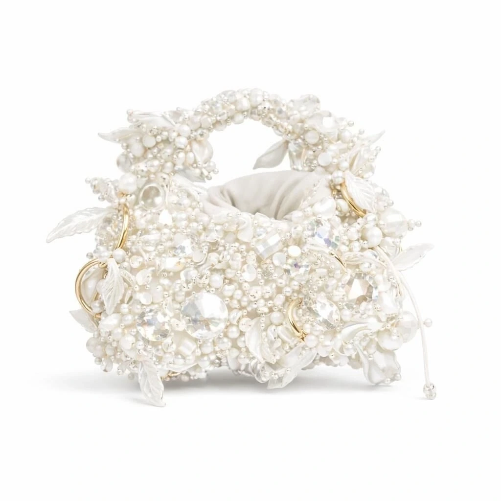 Gövde yapısı, farklı kesim ve hacimlerde kristal boncukların yüksek dayanımlı misina ile tek tek örülmesiyle oluşturulmuş; yüzey boyunca kontrollü düzensizlik prensibiyle ilerleyen üç boyutlu bir doku elde edilmiştir. Bu teknik, çantaya ışık altında canlı fakat doğal bir kırılma etkisi kazandırırken, yüzeyde monotonluğu kıran couture düzeyinde bir derinlik sunar.