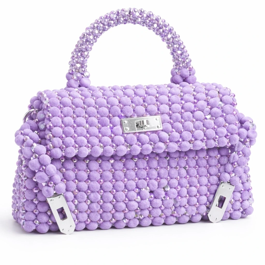 İç hacim, boncuk yüzeyle doğrudan teması engelleyen, pürüzsüz dokulu astarla kaplanmış; hem konforlu kullanım hem de uzun ömürlü yapı hedeflenmiştir. Vélis Amethyst, elde taşınabilir formu ve couture seviyesindeki işçilik yoğunluğuyla Velvet Noir Couture koleksiyonunun güçlü ve sofistike statement parçalarından biridir.