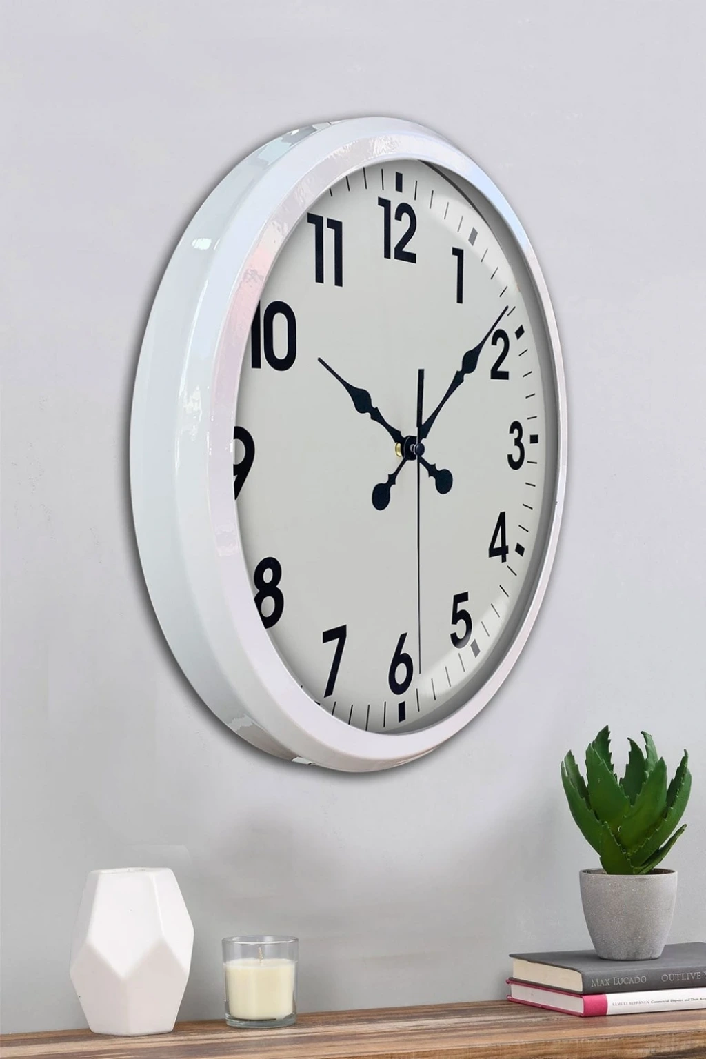 Şık ve modern tasarımıyla dikkat çeken 52 cm beyaz fırın boyalı duvar saatimiz, sessiz akar saniye mekanizmasıyla konforlu bir kullanım sunar. Gerçek cam koruma paneli sayesinde uzun ömürlü ve dayanıklıdır. Estetik görünümüyle hem ev hem de iş yerleri için ideal bir dekoratif üründür.