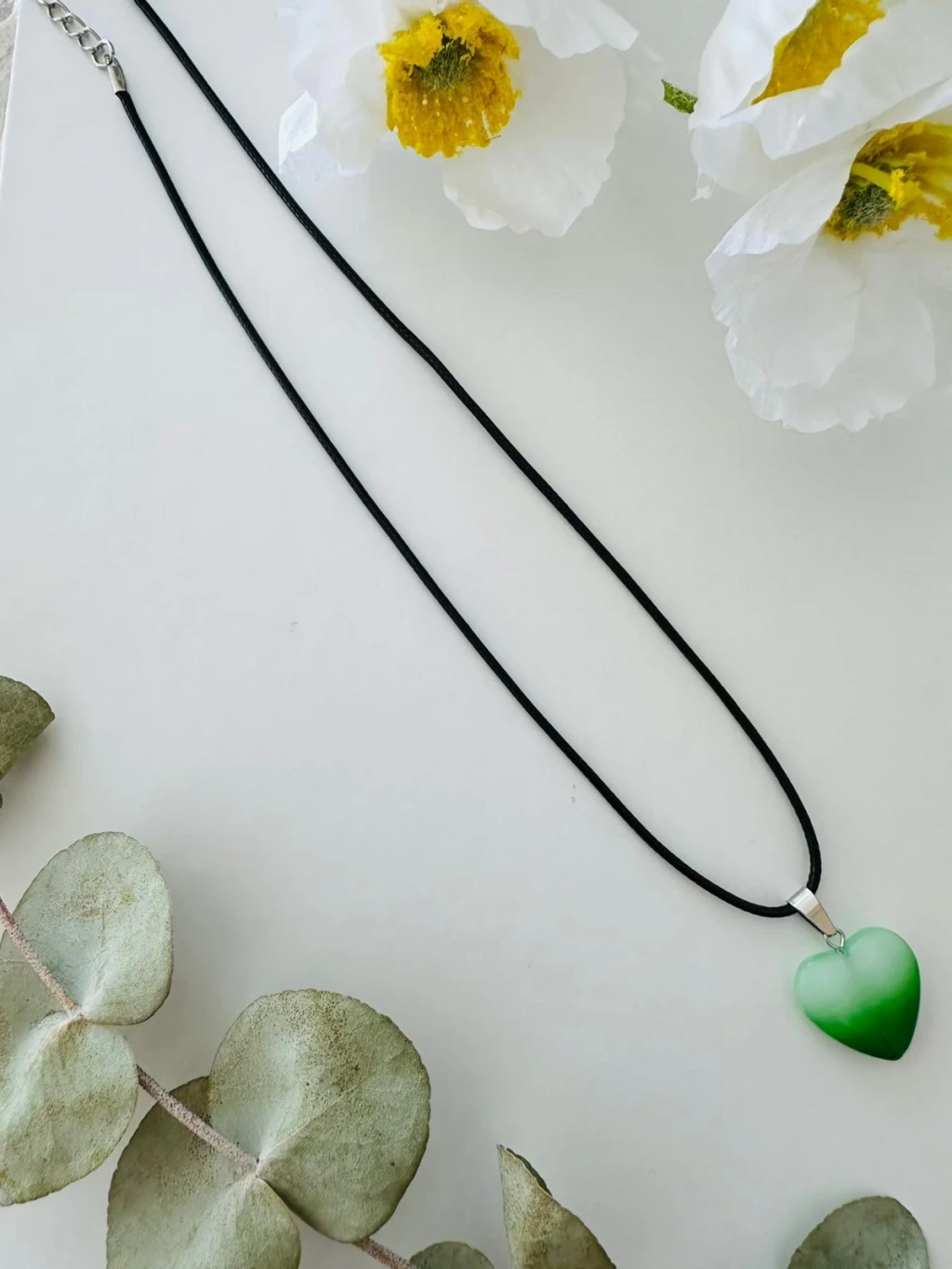 Yeşil ve beyazın uyumunu, siyah ip detaylarıyla buluşturan bu kolye, hem günlük stilinize hem de özel anlarınıza zarif bir dokunuş katıyor. Her biri özenle tasarlanmış, tamamen el işçiliği ile üretilmiş bu aksesuar, eşsiz bir hediye seçeneği de sunuyor.